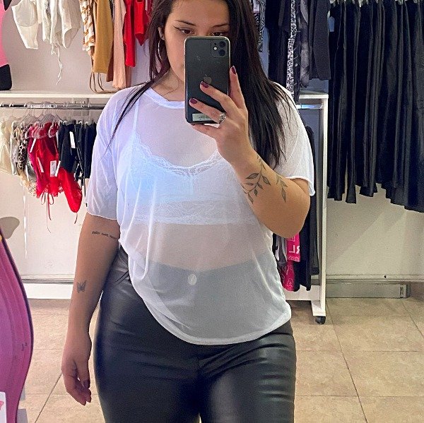 Top microtul Over blanco